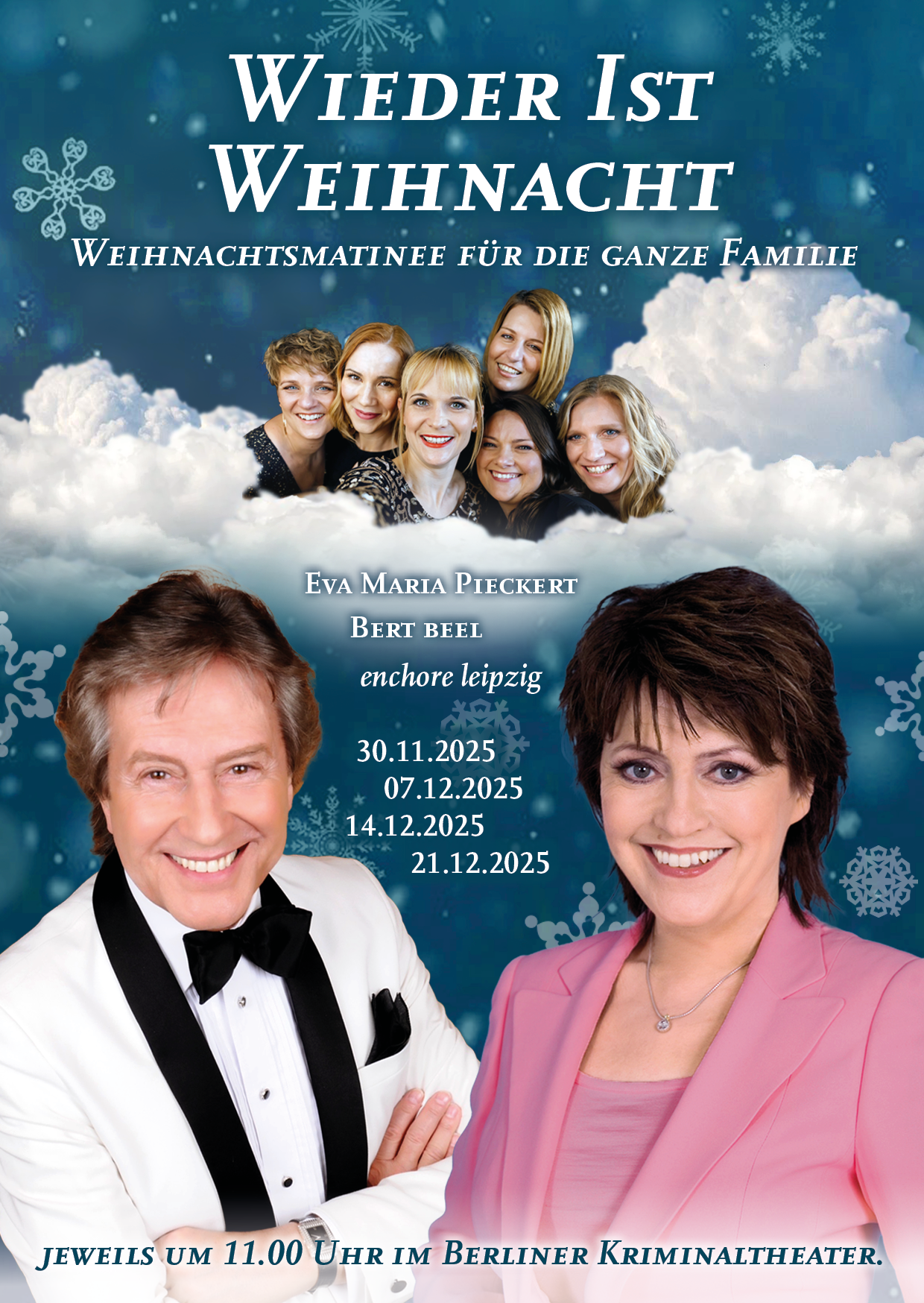 Zum 14. Mal präsentiert Eva Maria Pieckert "Wieder ist Weihnacht“ - und wir sind dabei. Tickets unter: Ort: Berliner Kriminal Theater |